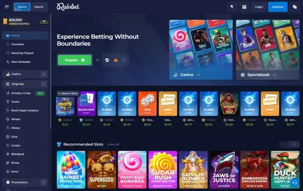 When you join casino Rain Bet, you can browse 7,000+ games across Slots, Live Casino, Originals, Sportsbook, and Case Battles, powered by studios including Pragmatic Play, Evolution, Play'n GO, Hacksaw Gaming, Nolimit City, NetEnt, BGaming, and Big Time Gaming. The platform uses SSL Encryption (Cloudflare), supports Provably Fair titles, and holds RNG certification from GLI and iTech Labs. The Rainbet login sits at the top of every page for quick access. Operating under Anjouan licence 001-2023-AJG, Rainbet reviews frequently highlight lobby size, crypto speed, and clean layout across devices.